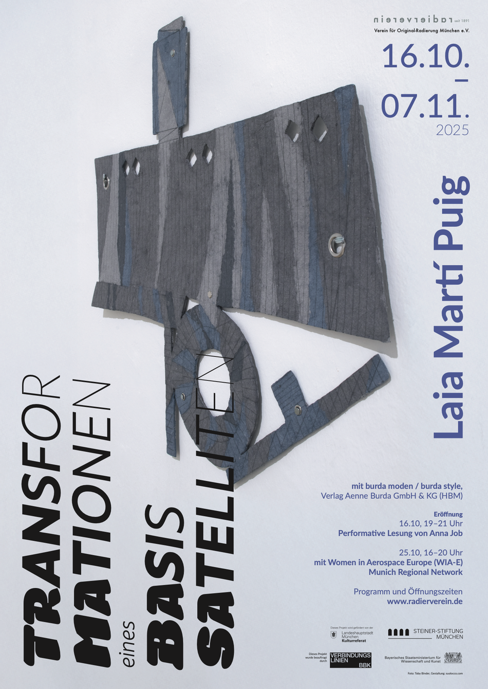 Abb.: Laia Martí Puig, Ionenaustrittsdüse, 2025, Papierskulptur aus recyceltem Denim und Baumwolle, Siebdruck, Metall © Laia Martí Puig, VG-Bild-Kunst; Foto: Toby Binder